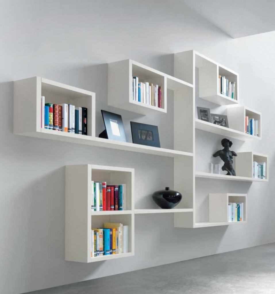 Advice! Installing wall shelves in a checkerboard or random pattern will create an original interior. However, so that they do not seem bulky, it is better to choose light colors and a miniature model.