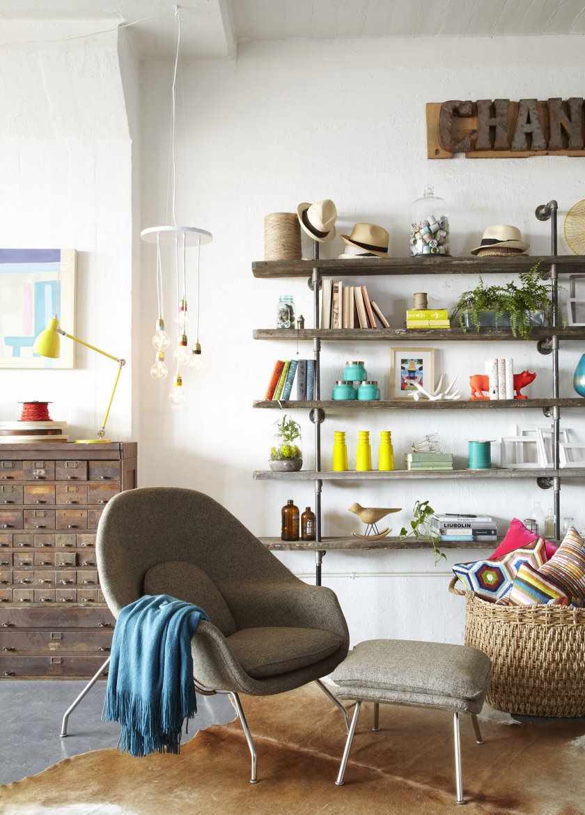 Decor items placed on the shelves will give the room a cozy and romantic atmosphere (photos, posters, flowers). |