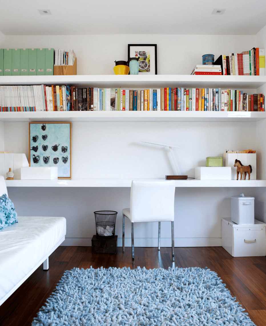 - For children of middle and older age, shelves are required for storing school and writing materials, books and other things. Also, for added convenience, wall or corner shelves are mounted near or above the desk.