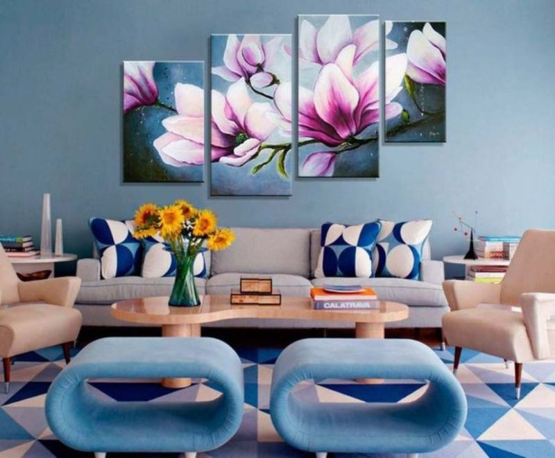 When choosing, a prerequisite is to combine them in style, material and colors with existing furniture. In general, it will be harmonious when the emphasis is on particular details - either it is bright impressive furniture and calm tones of the picture, or vice versa - discreet furniture combined with flashy canvases.