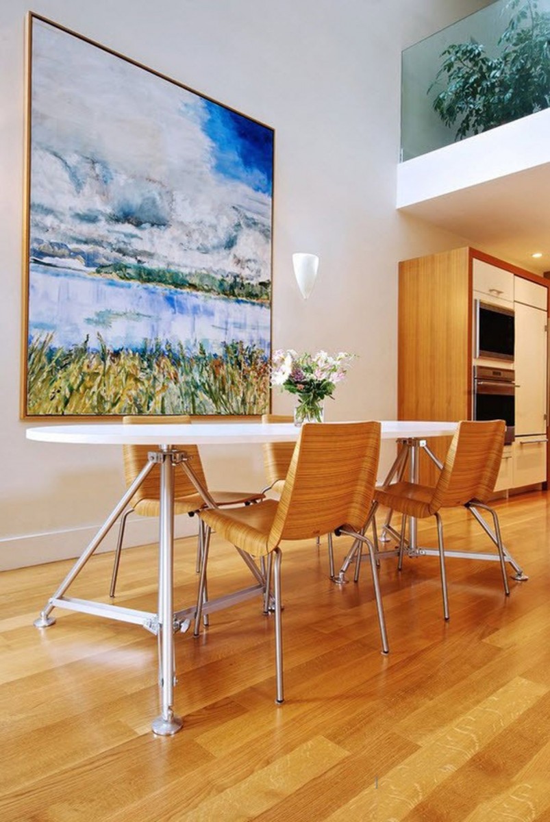 To place the selected work on the wall should be approximately opposite the eyes, or slightly higher. If the picture will be located above the dining table, it is better to hang it opposite the view from the sitting position.