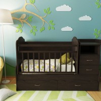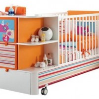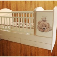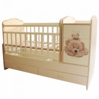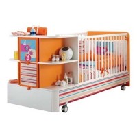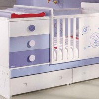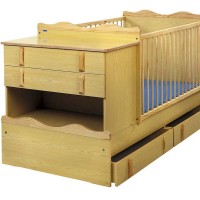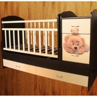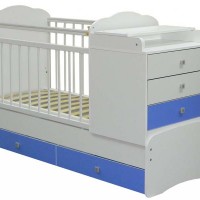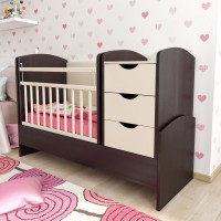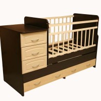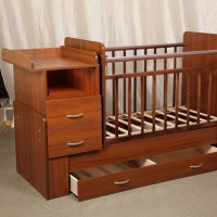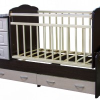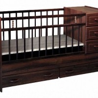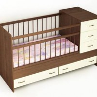 - A crib with a chest of drawers or a wardrobe.Such cots are combined with a chest of drawers or a closet. The provided sectional type of construction contains immediately from two or more elements. The design allows you to change the position of the drawers, placing them on the sides of the bed. The bottom of the crib is standardly occupied by a capacious drawer.