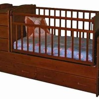 There are transformer beds with a mechanism for motion sickness of the baby, with it a simple cot turn into a cradle, which makes it easier for parents to soothe a small child: it takes less time. If desired, the pendulum is fixed in a static position. Mechanisms for side rails, roomy drawers at the bottom of the bed and soft polymer lining - “rodents” are standardly attached to such a crib.