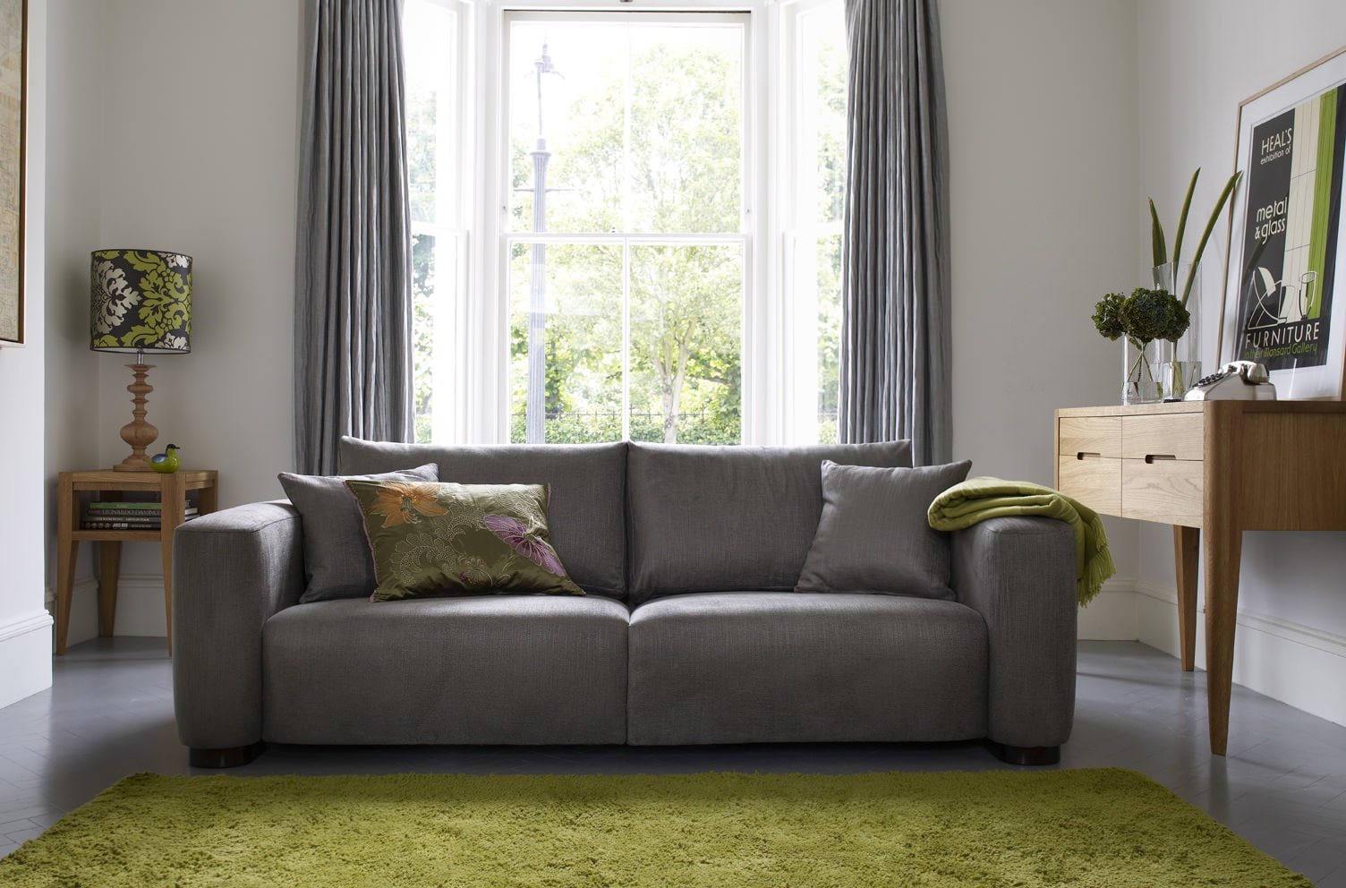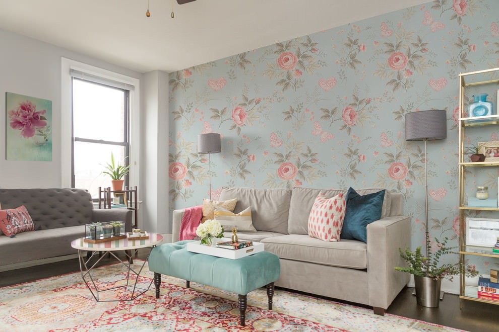 The gray sofa is considered neutral, so it will be a good background for any shades
