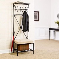 Banquet racks are popular. The design includes a clothes hanger, a comfortable seat, and a shoe rack underneath. This option is suitable when there is an additional closet in the hall where shoes are stored.