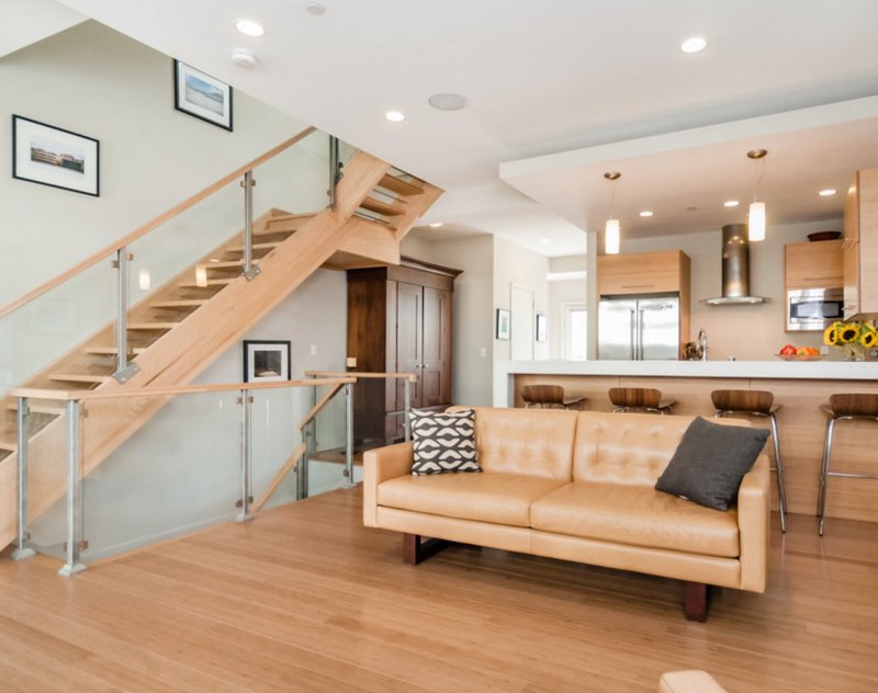 The floor on which the sofa is located can be any material. Usually if the upholstery is leather, the flooring is tile. It can be marble or ceramic. Choose according to your own preferences and available budget.