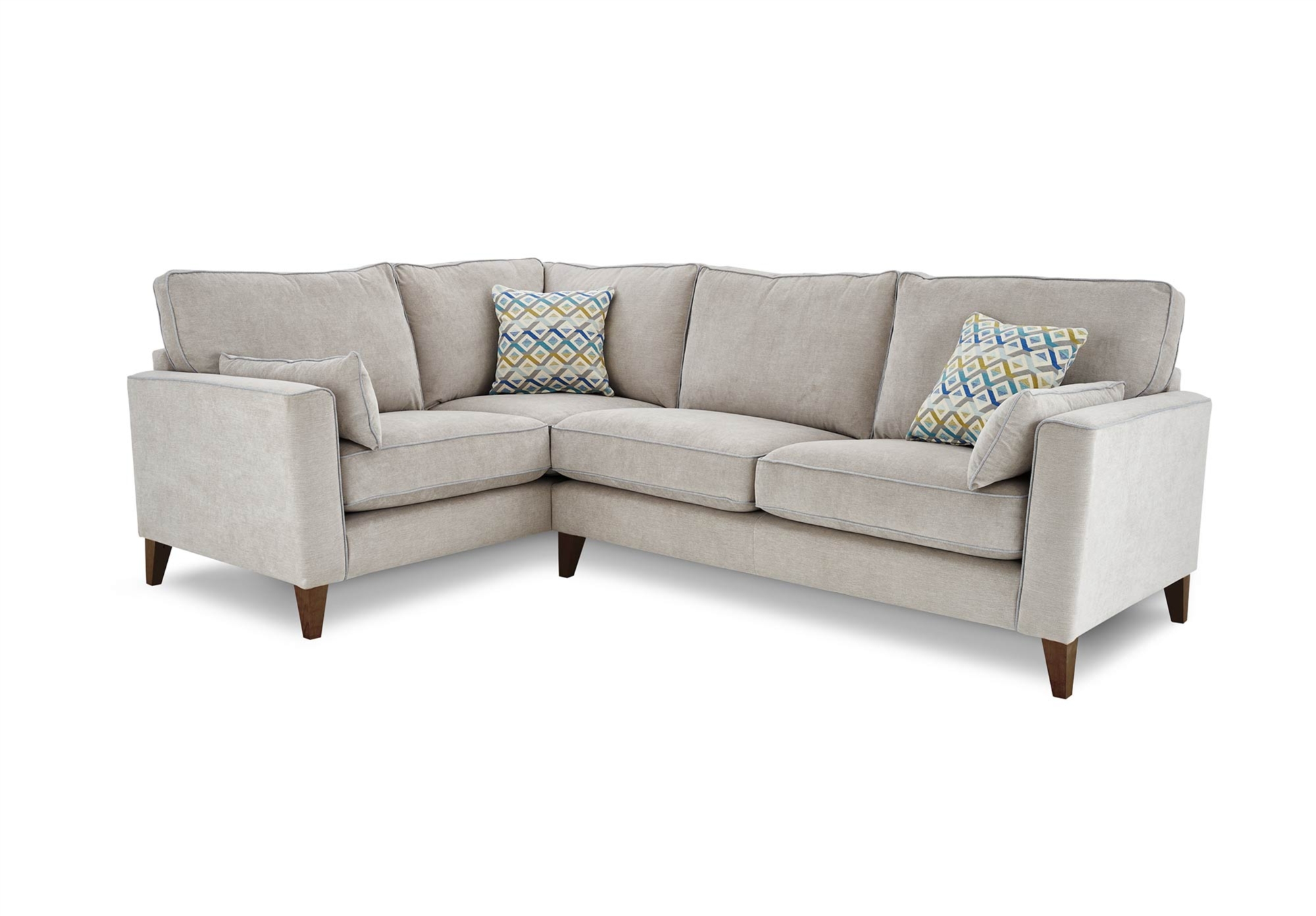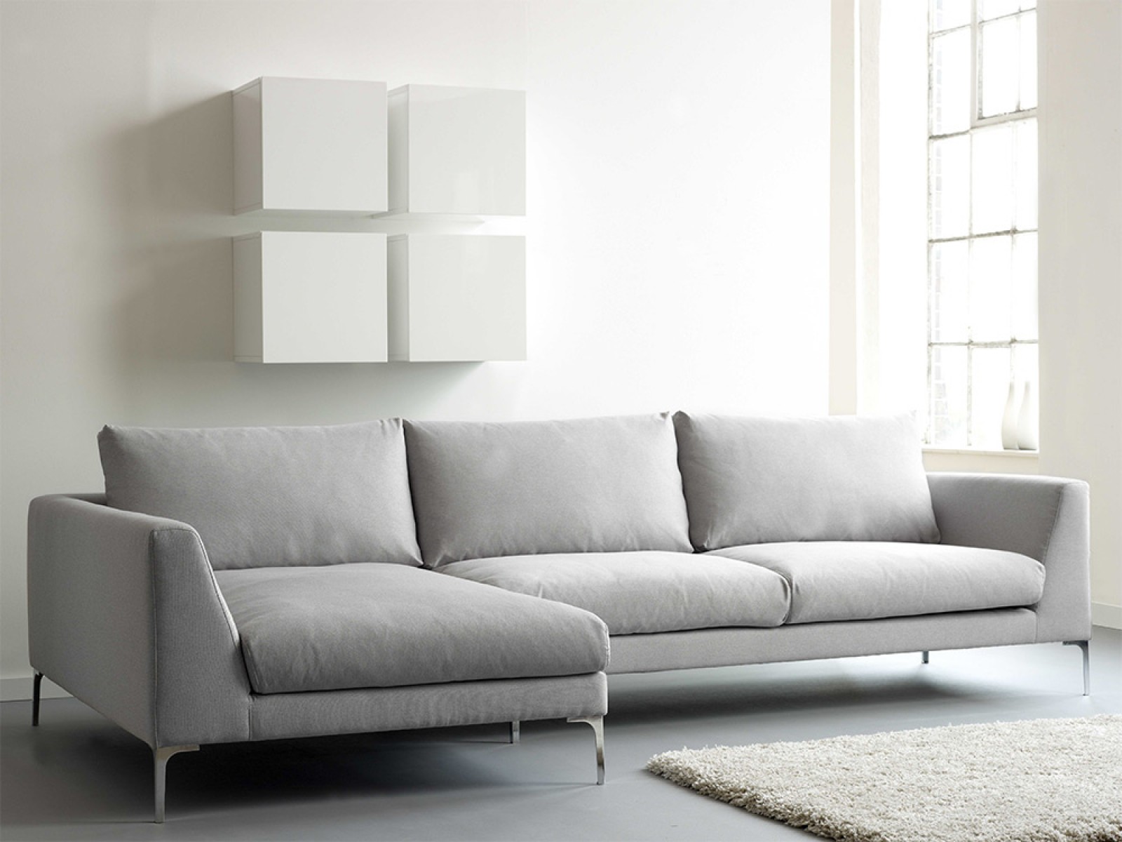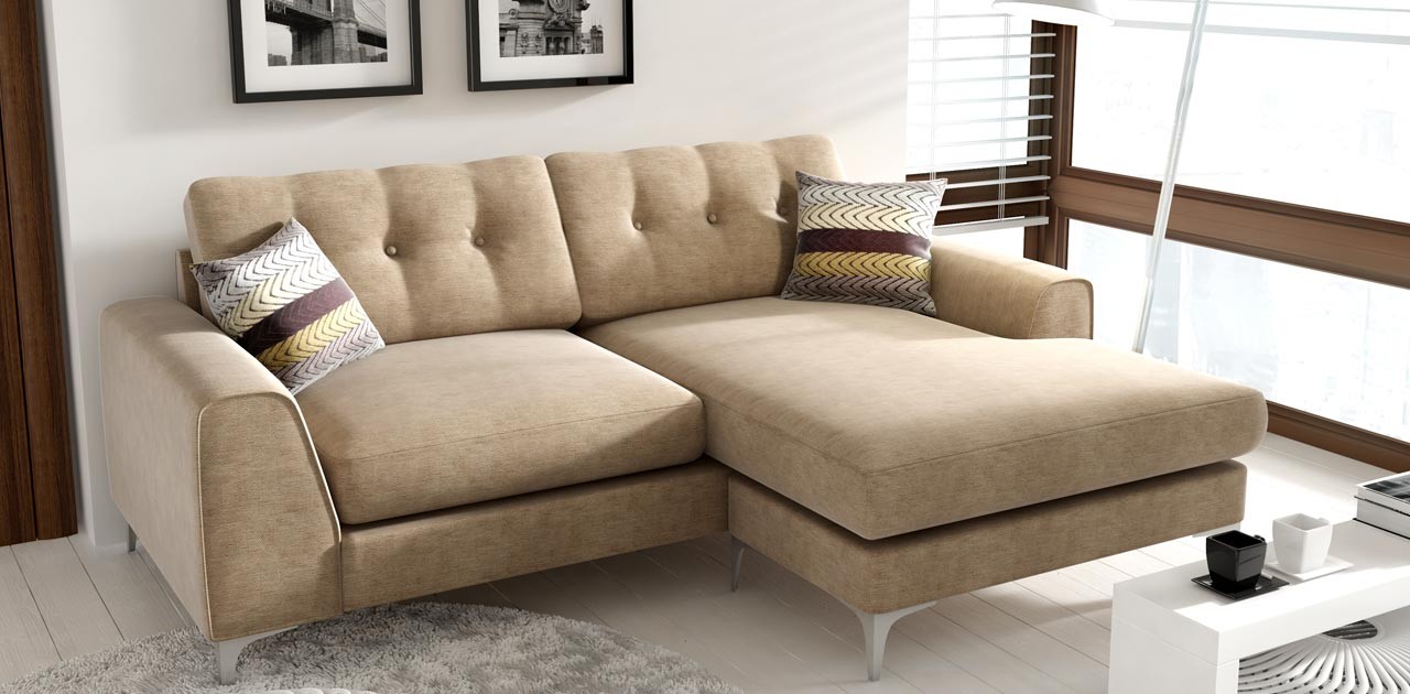 The most suitable option is a soft corner, which is based on the basic form of an ottoman on high metal legs. Photos of corner sofas in the interior of a small room show that this model fits organically into the interior. The sheen of her tall legs makes the piece of furniture easier for visual perception.