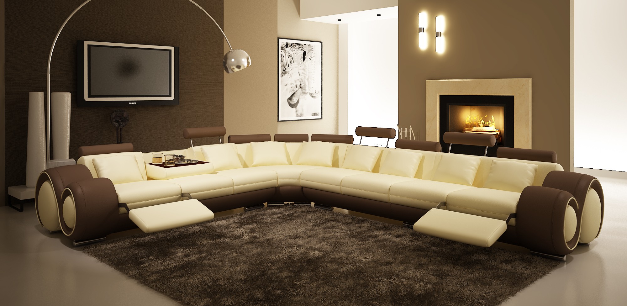 There is another solution to the interior of the living room with a lounger corner sofa. A great place to receive guests is a recreation area where the sunbed consists of two parts. The advantage of this sofa is that during an official meeting it turns into a simple sofa with an ottoman complementing the interior. In the absence of strangers in the house, a sliding ottoman, matching in height with a sofa, will turn any part of it into a convenient place to relax in a lying position.