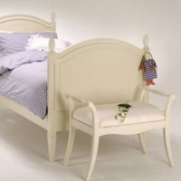 The rustic style is divided into several independent directions. It can appear in the form of an elegant Provence design, filled with the spirit of antiquity. In this case, a banquet painted with pastel paint, through which the texture of wood is visible, will be a suitable addition to the aged furniture. Finishing the seat with embroidered fabric or floral prints is a stricter version of the country style that has its roots in the United States. It uses a lot of raw wood for decoration. The bedroom resembles a farmer’s home, which primarily appreciates practicality and comfort. The furniture is simple, without unnecessary details. A stool is selected with upholstery in a box or plain. Pompous carved elements and satin fabrics are unacceptable.