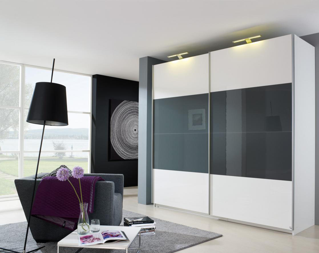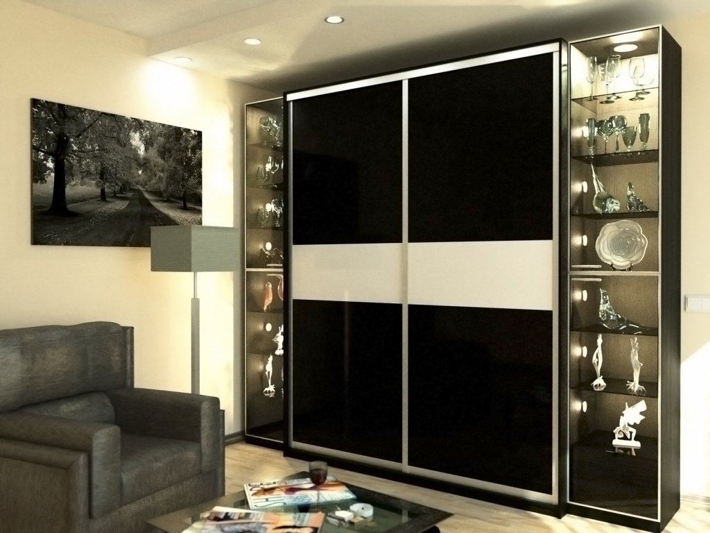 Use original ideas - trendy mirrored facades in black, copper or golden hues, provide internal compartments with diode illumination. You can place a television plasma panel on the facade, but it is important to think about connecting the wires so that they touch anything and the door moves easily along the guide. More unique ideas are in our photo gallery.