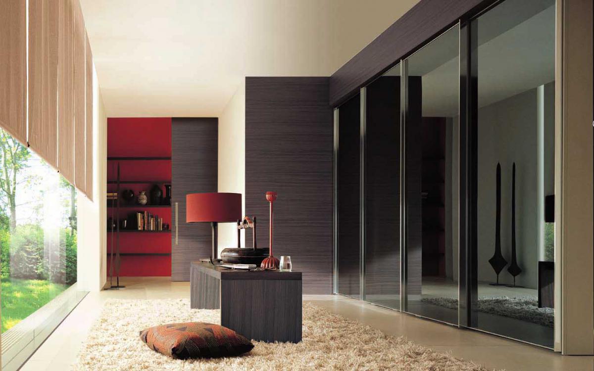 The modern "coupe" will ennoble the modern interior and give it conciseness and elegance. Sliding wardrobes are also used for zoning of space in a spacious room - as a partial wall.