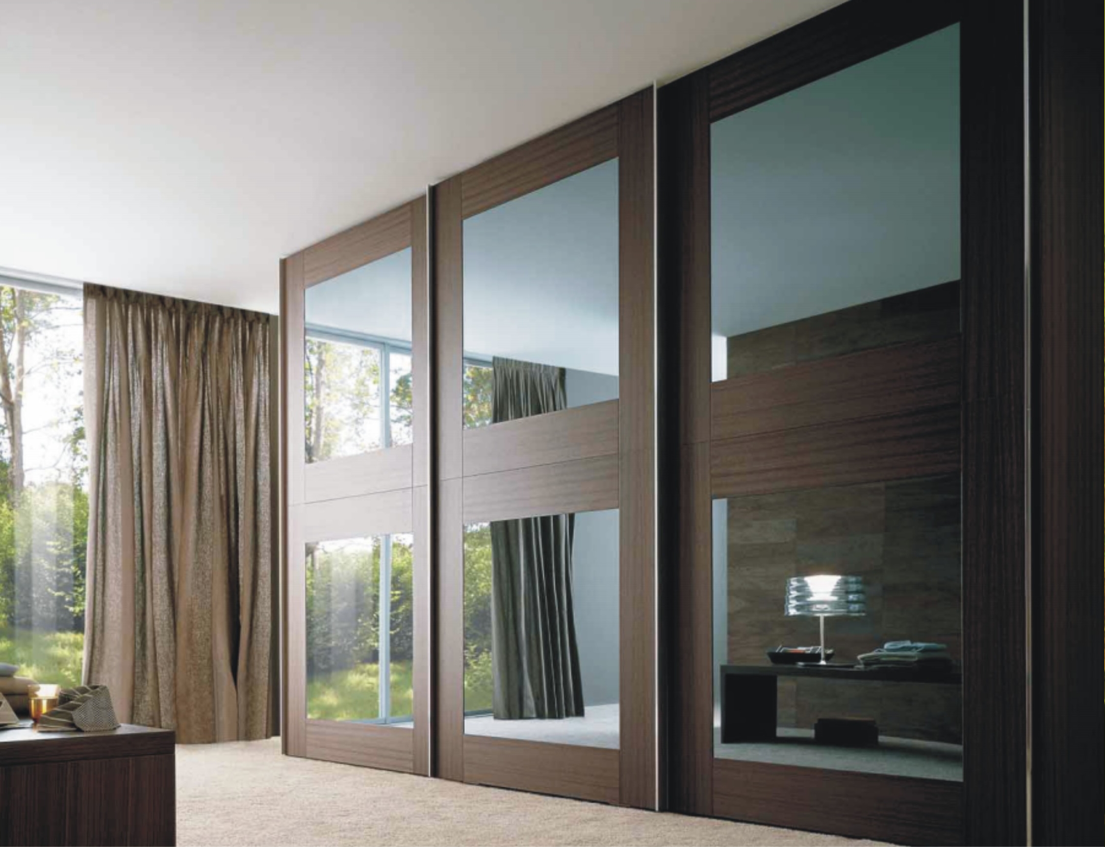 Mirror wardrobe in the design of the room
