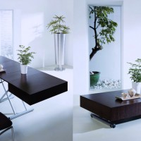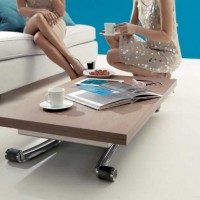Transforming tables for the living room are conventionally divided into two types: