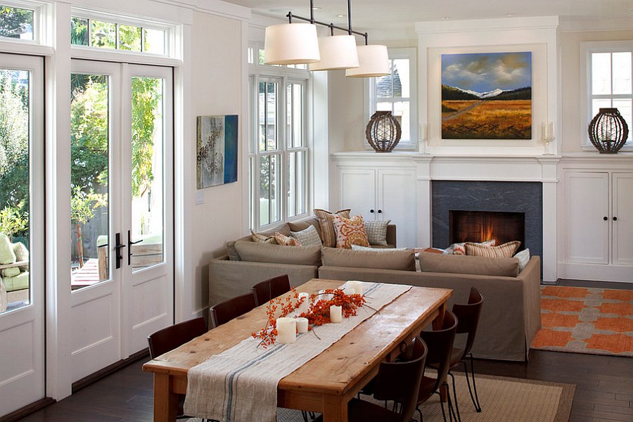 Purchasing a transformer table for a living room will partially help solve the problem. Buying such an interior item, you will receive a coffee, dining, writing desk and stand “in one bottle”. Photos of transforming tables for the living room can be viewed on the Internet or catalogs of furniture companies.