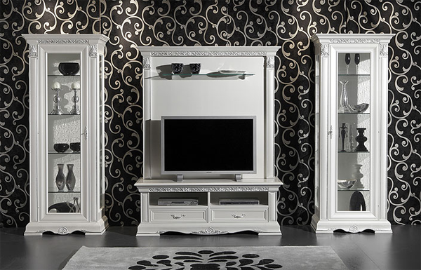 - For bedrooms in historical style acquired expensive luxury furniture imported. Such models cannot be confused with anything - they are elegant and noble, they look expensive. The luxury apartments will be complemented by a white or light bedside table (stand) with wood carvings in the Baroque, Rococo or Renaissance style.