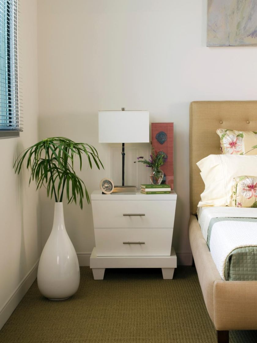 Floor vases in the bedroom interior can be classic "pots" with a narrow neck, simple plain ceramic figures or wooden in the modern direction. The bedroom is designed for rest and relaxation at the end of a hard working day, so futuristic metal products will definitely not fit here - they will make it heavier and hardly fit into it.