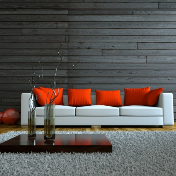 A large red vase will become a bright accent in the interior of the room in a minimalist style