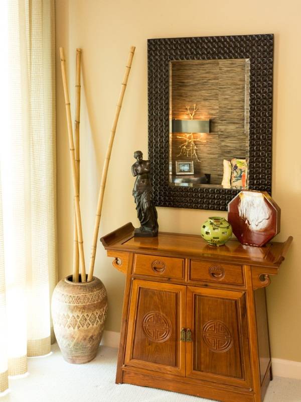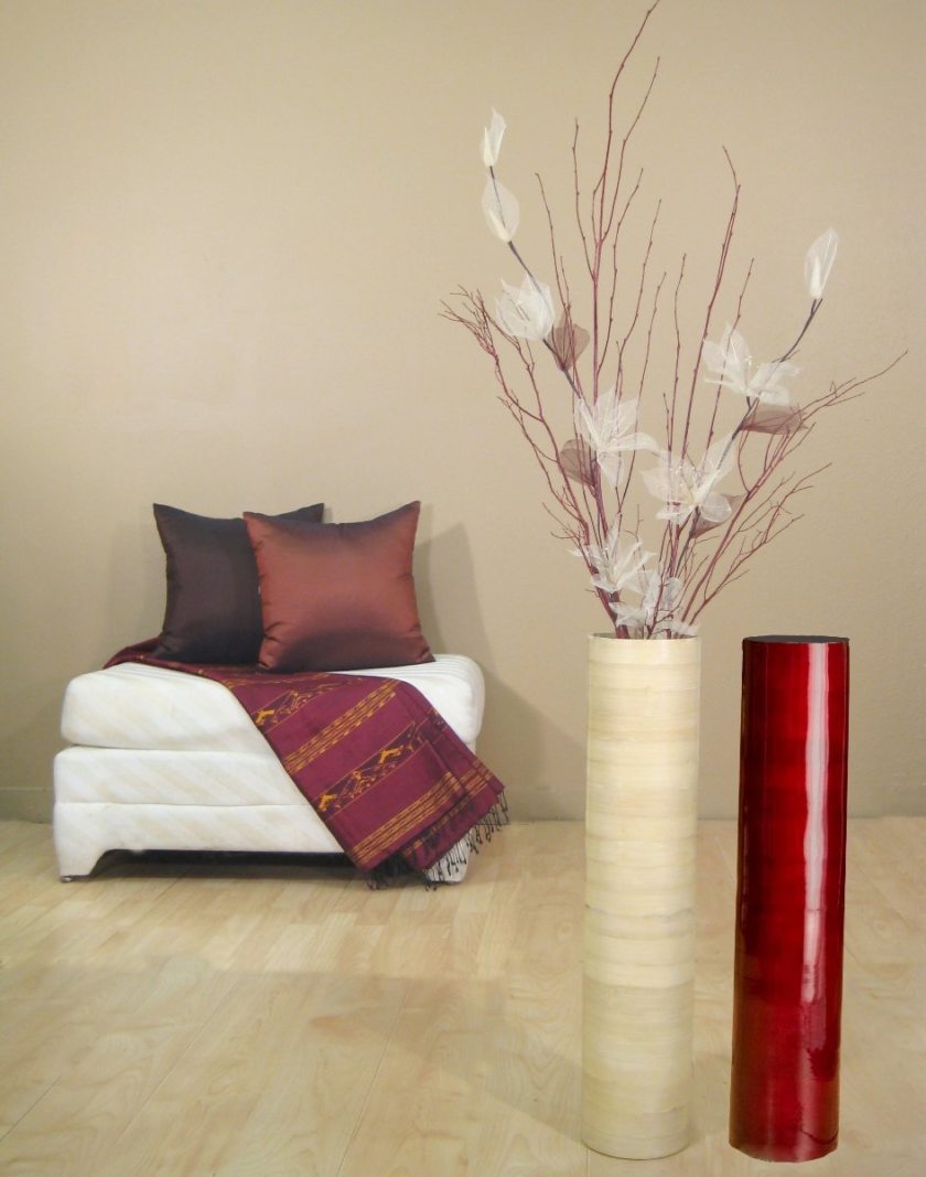 Floor vases are designed for rooms with a large area and high ceilings. Due to the fact that the floor vases are large, in a cramped space they will look “pinched”, absurdly.