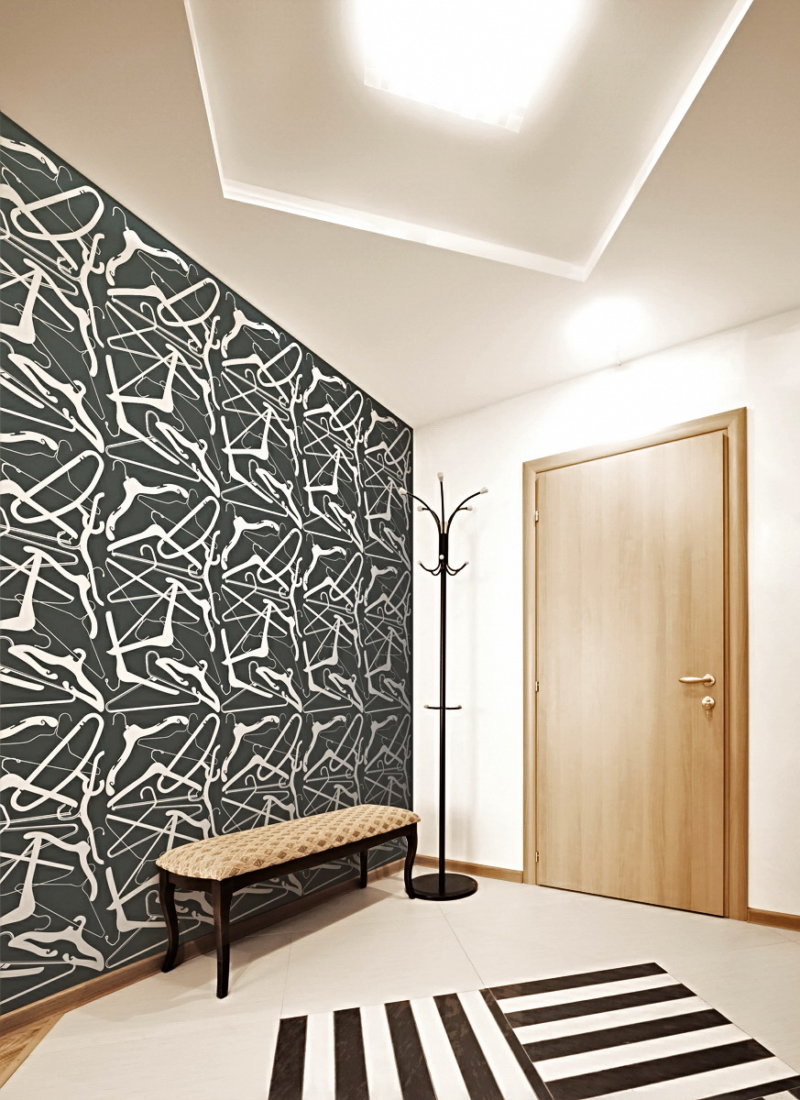 - It is believed that such a color scheme will narrow the small hallway. However, the designers offered many options when black and white wallpapers in the interior of the corridor, hallway or small vestibule room at the front door are quite good.