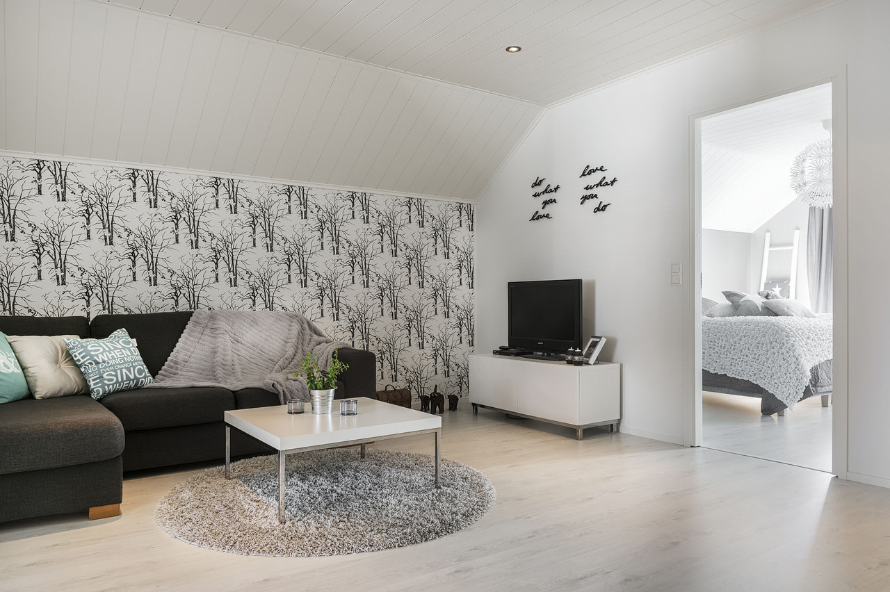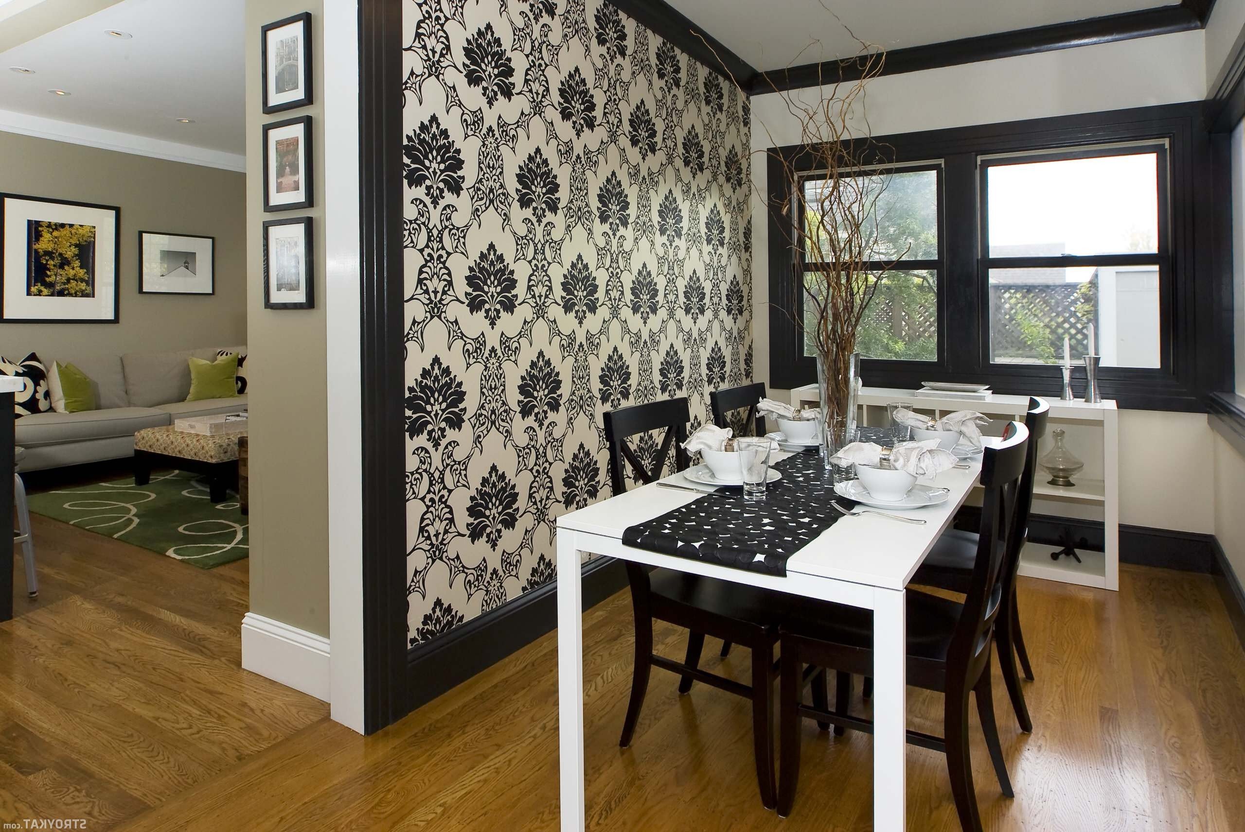 Bright rooms with black wallpaper