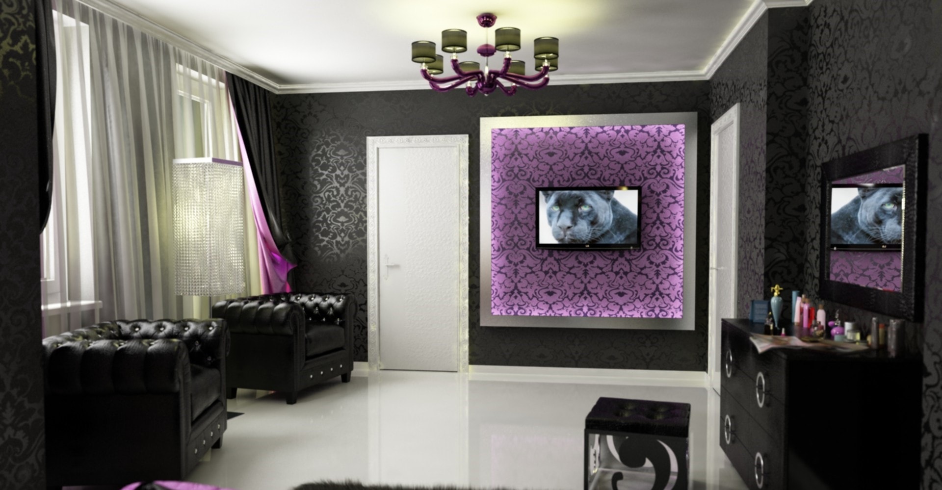 Beautiful room with black wallpaper
