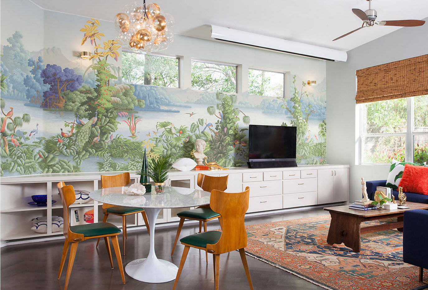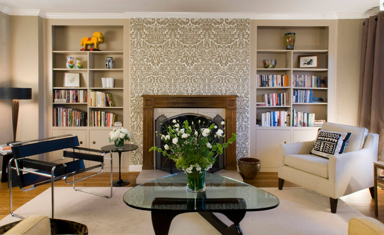In the living room, all types of wallpapers can be used for full or partial wall decoration.