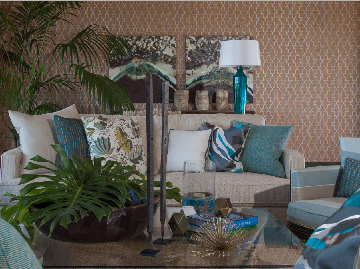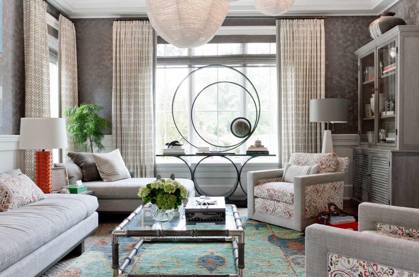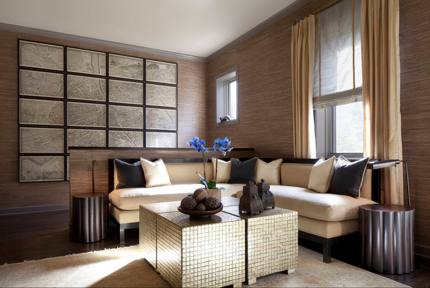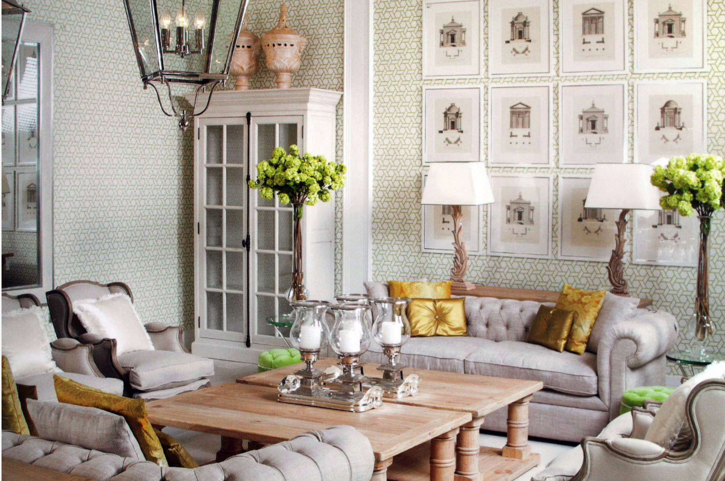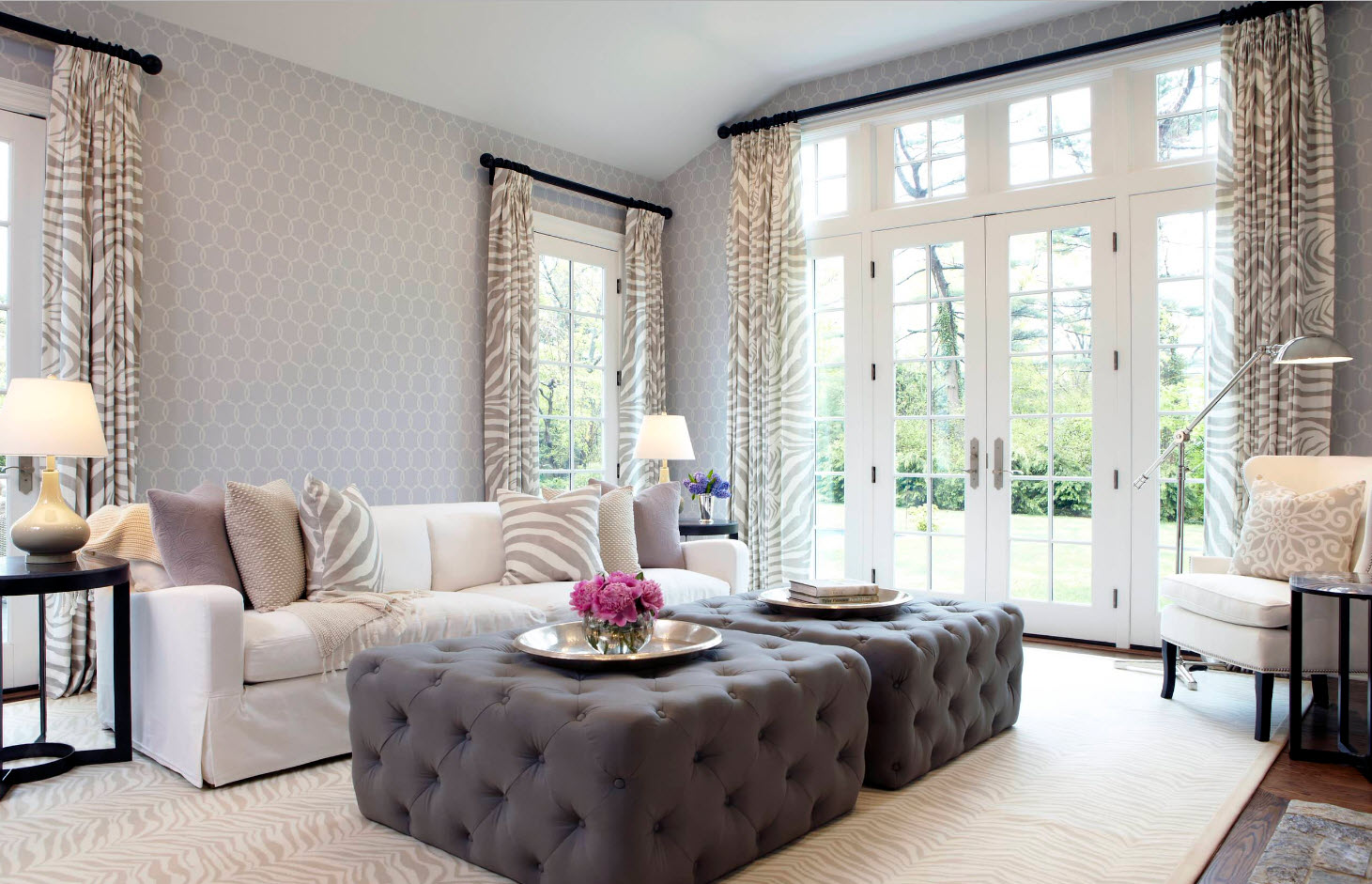 - Neutral mesh or striped pattern, with small or large elements resembling monograms, floral ornament - into the living room.