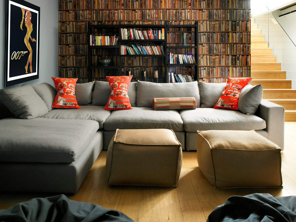 The accentuation of the wall can be without exposure or installation - just a spectacular backdrop for a multi-seat group of sofas.