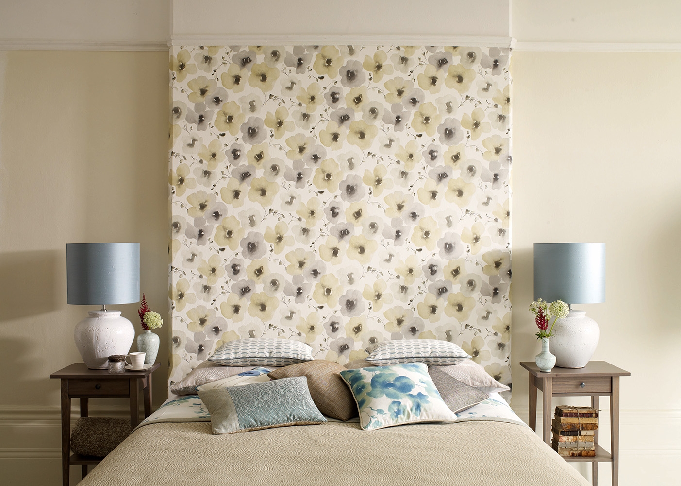 The wall above the head of the bed is a good place to emphasize