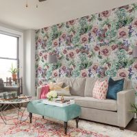 Now about the popular printed wallpaper. In order not to create a heavy atmosphere in the living room, it is better to combine printed wallpapers with plain canvases. Do not forget about harmony here.