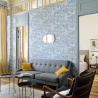 So, wallpapers are great for creating the design of the hall in 2019. The main trends are interesting combinations, prints and, along with this, minimalism.