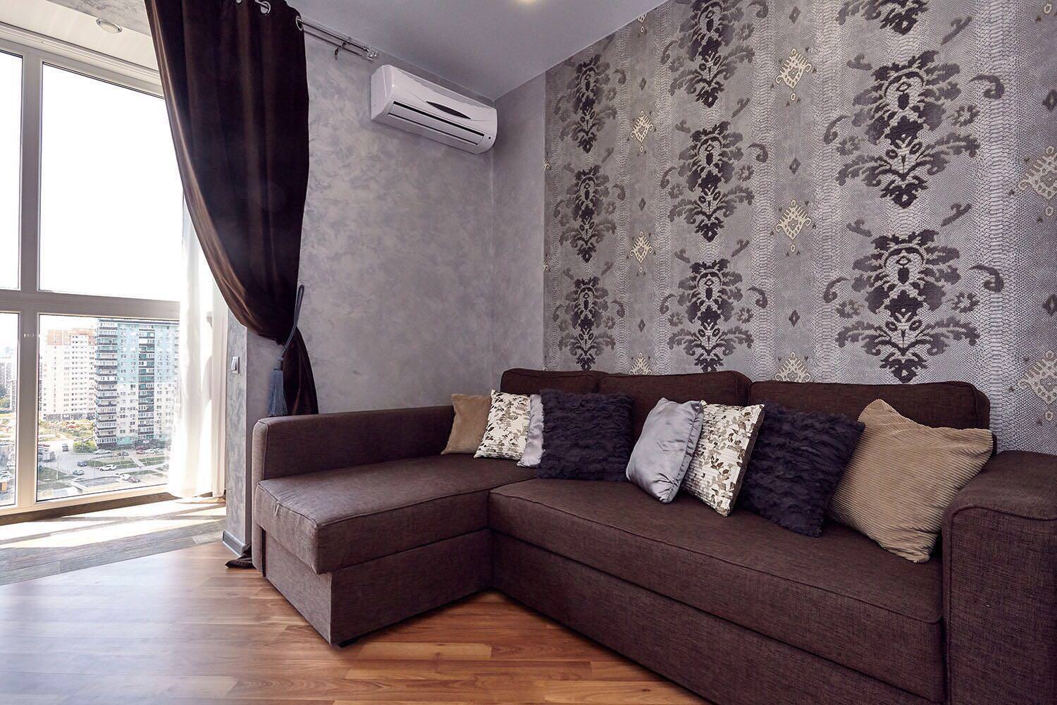 Washable and moisture-proof wallpapers are used in a studio apartment or living room combined with a kitchen or other room.