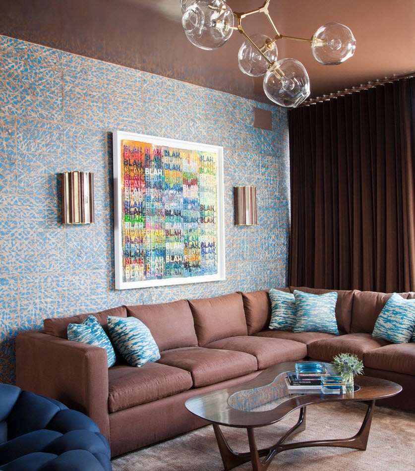The “golden rule” of design: Under dark furniture - a light background of the wall, under the light - dark. For plain upholstery - wallpaper with a large pattern, in the interior of the living room with plain walls - patterned textile. The color of the vertical surfaces should be in harmony with the whole decor, ceiling and floor.