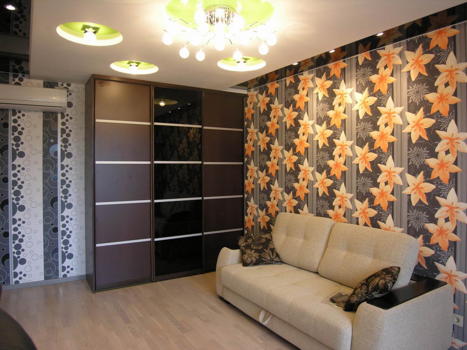 The combination of three types of wallpaper in one living room