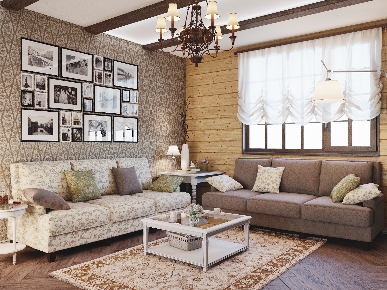 Coating walls that mimic the wood texture, it is undesirable to duplicate furniture, especially if the floors are also wood. In this case, everything will look like inside a wooden box, losing lightness and elegance.