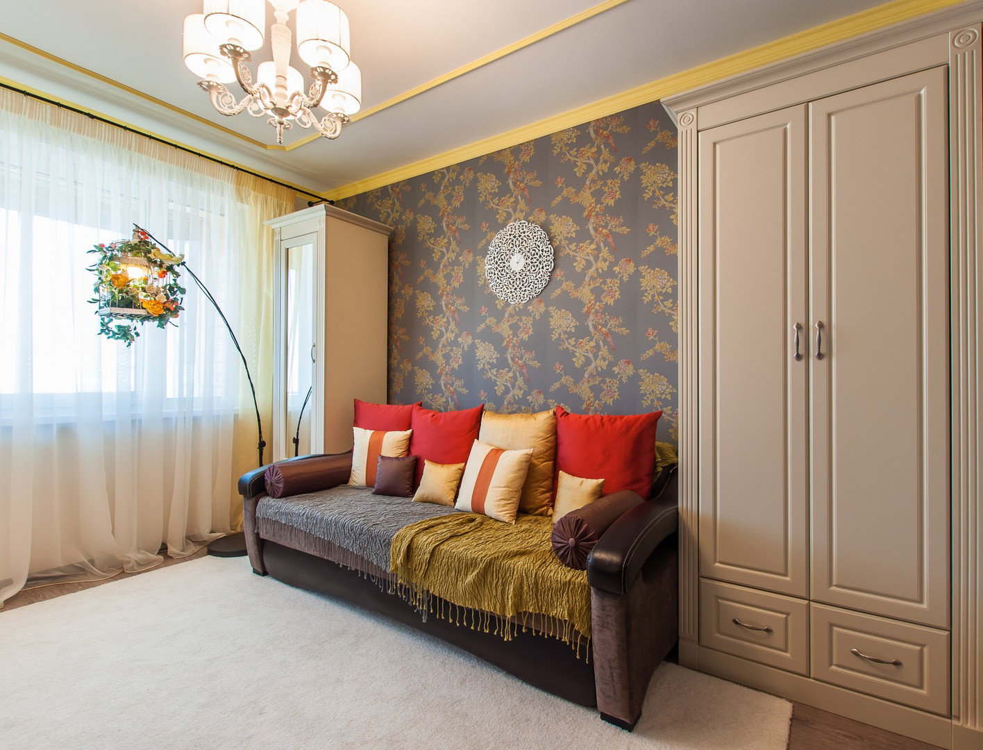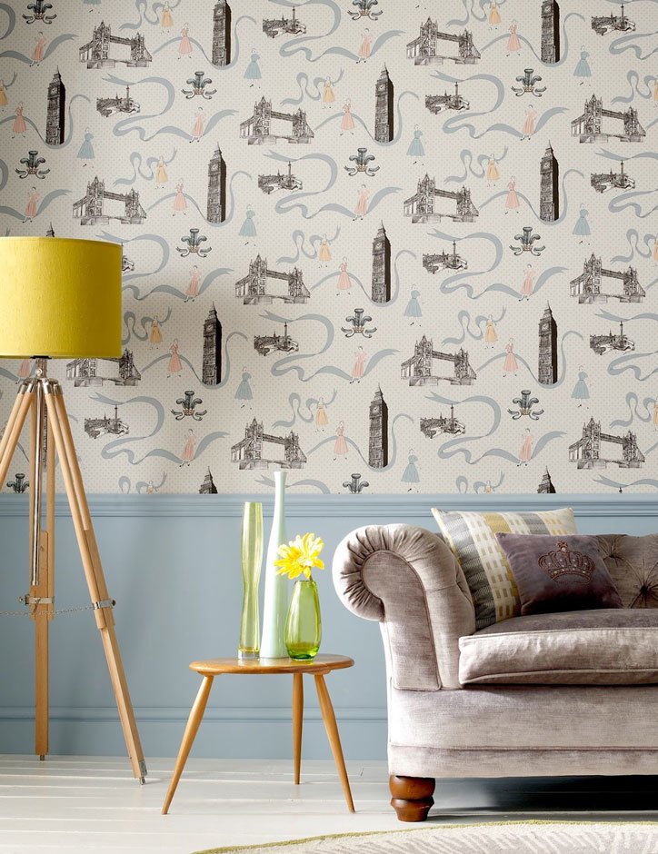Ideally, you need to find wallpaper with a pattern that matches furniture and textiles