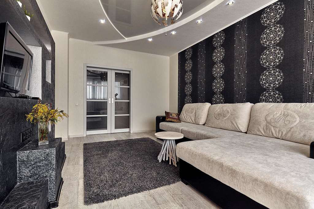 Tip. If you want to use the design ideas of black wallpaper for the living room, experts recommend buying glossy or with a jacquard effect. But it is better to paste them on an accent wall or in a niche, as a background for expensive exhibits or antiques, like a velvet jewelry box.