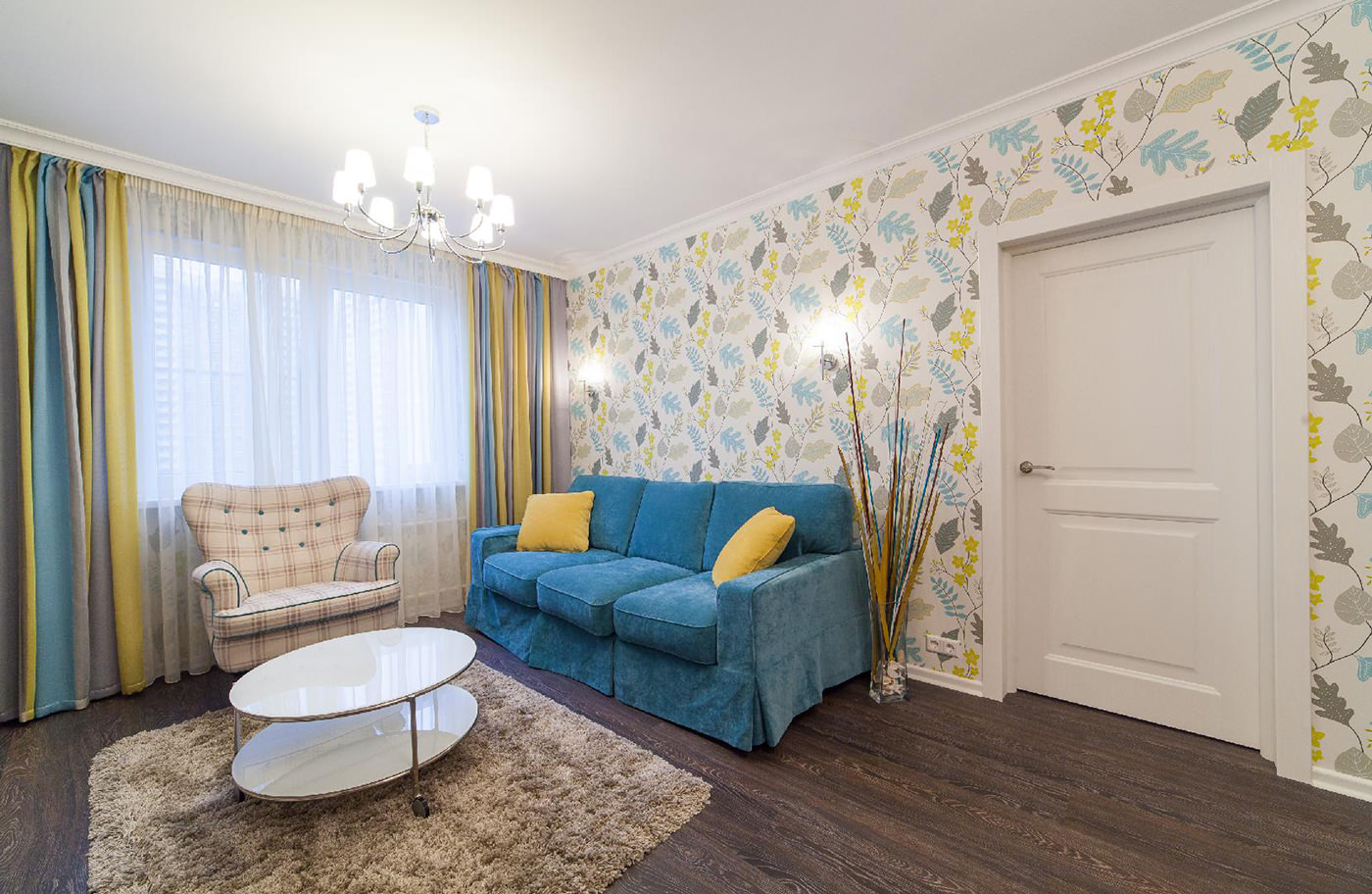 If the living room has a dark floor, it is better to choose light wallpapers