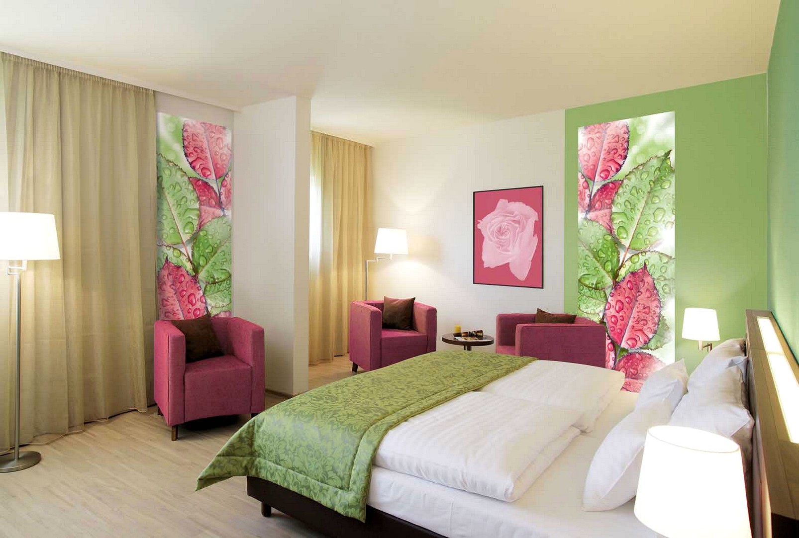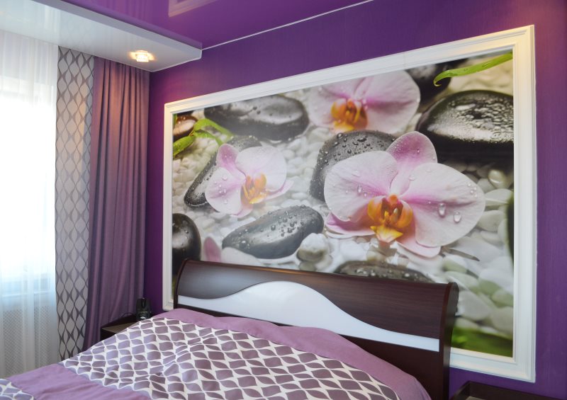 Depending on preferences and the general style of housing, it is possible to choose an original solution in several ways. For example, in the bedroom for husband and wife, photo wallpaper with flowers will work well. A fashionable trend in modern room decoration is large photographs or images of flowers, plant motifs, which are located on the wall space at the head of the bed, especially if the room is small.