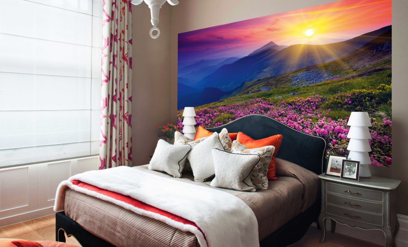 Photowall-paper with landscapes are combined practically with any style of a bedroom interior