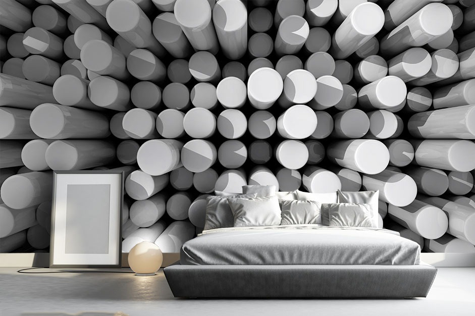 - Wall murals with 3D create the appearance of convex, concave, inhomogeneous in shape walls with various bends.