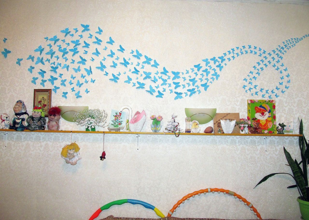 There should not be any problems with fastening; paper butterflies are very light. Double-sided tape is ideal for this purpose, which will allow you to get rid of the decoration at any time without damaging the wallpaper.