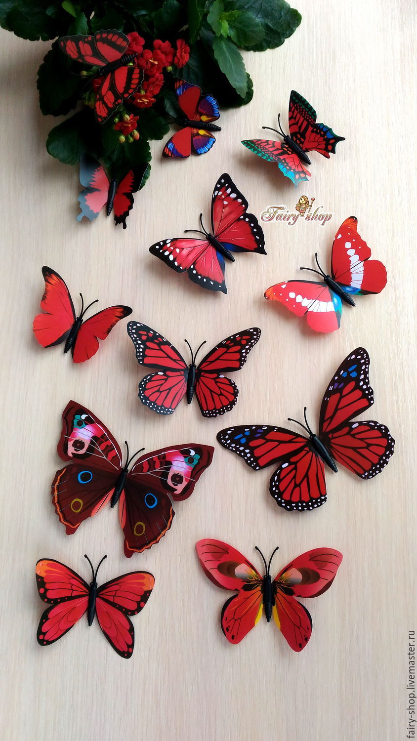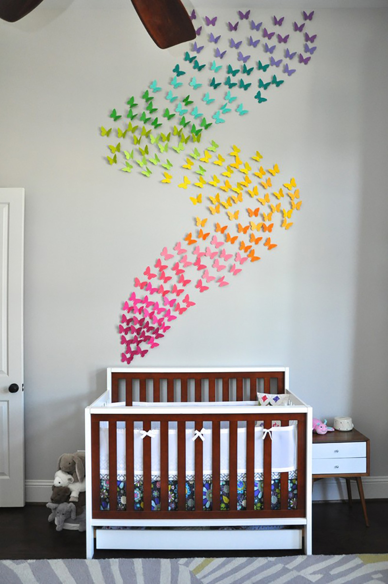 The most economical and convenient material to use. You can fix paper butterflies on the wall using glue or double-sided tape.
