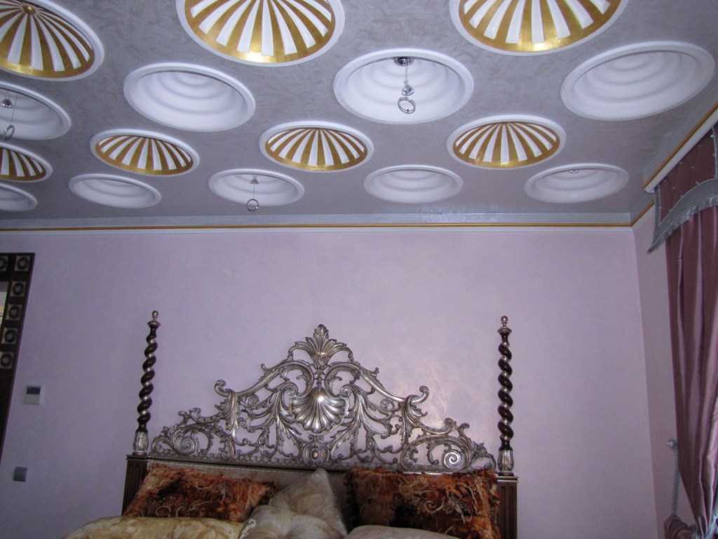 Stucco molding is mainly placed around the perimeter, around the chandelier. Often there is a painting framed by stucco. This material is easy to use, they can decorate the ceiling with their own hands. By combining various parts of stucco molding, you have the opportunity to create different shapes and shapes.