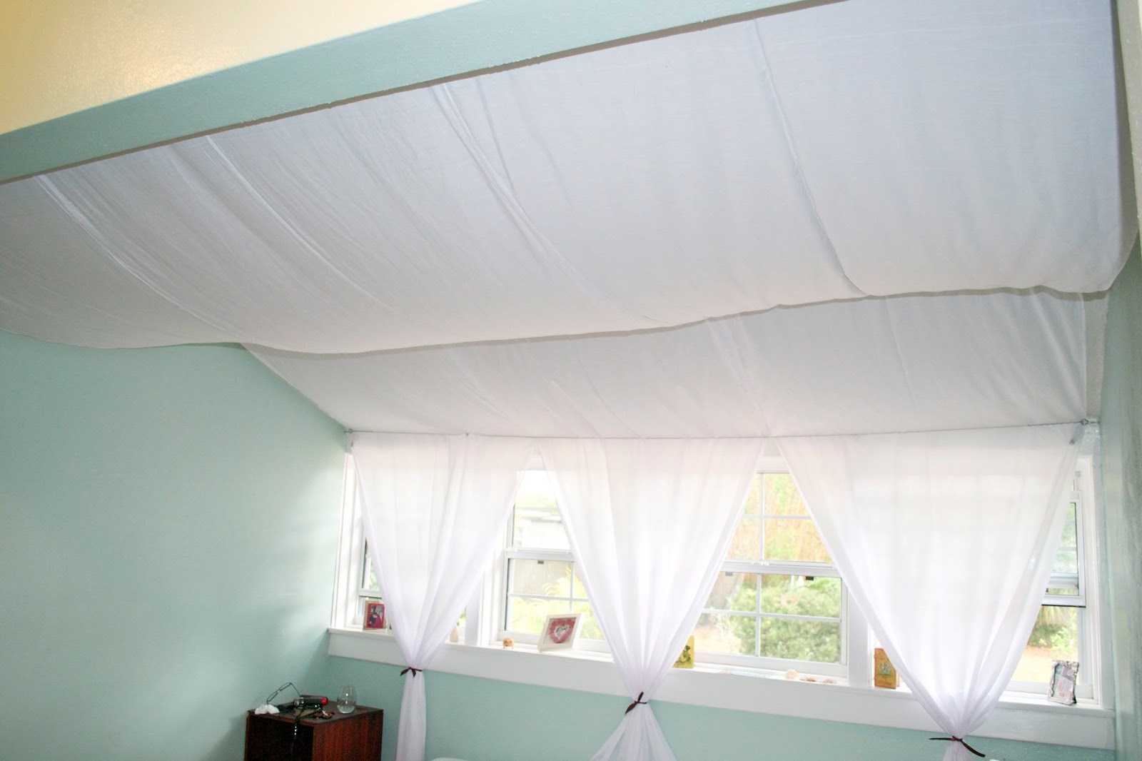 Important! The decor of the ceiling with a cloth visually makes the room much smaller, therefore it is suitable mainly for spacious rooms.