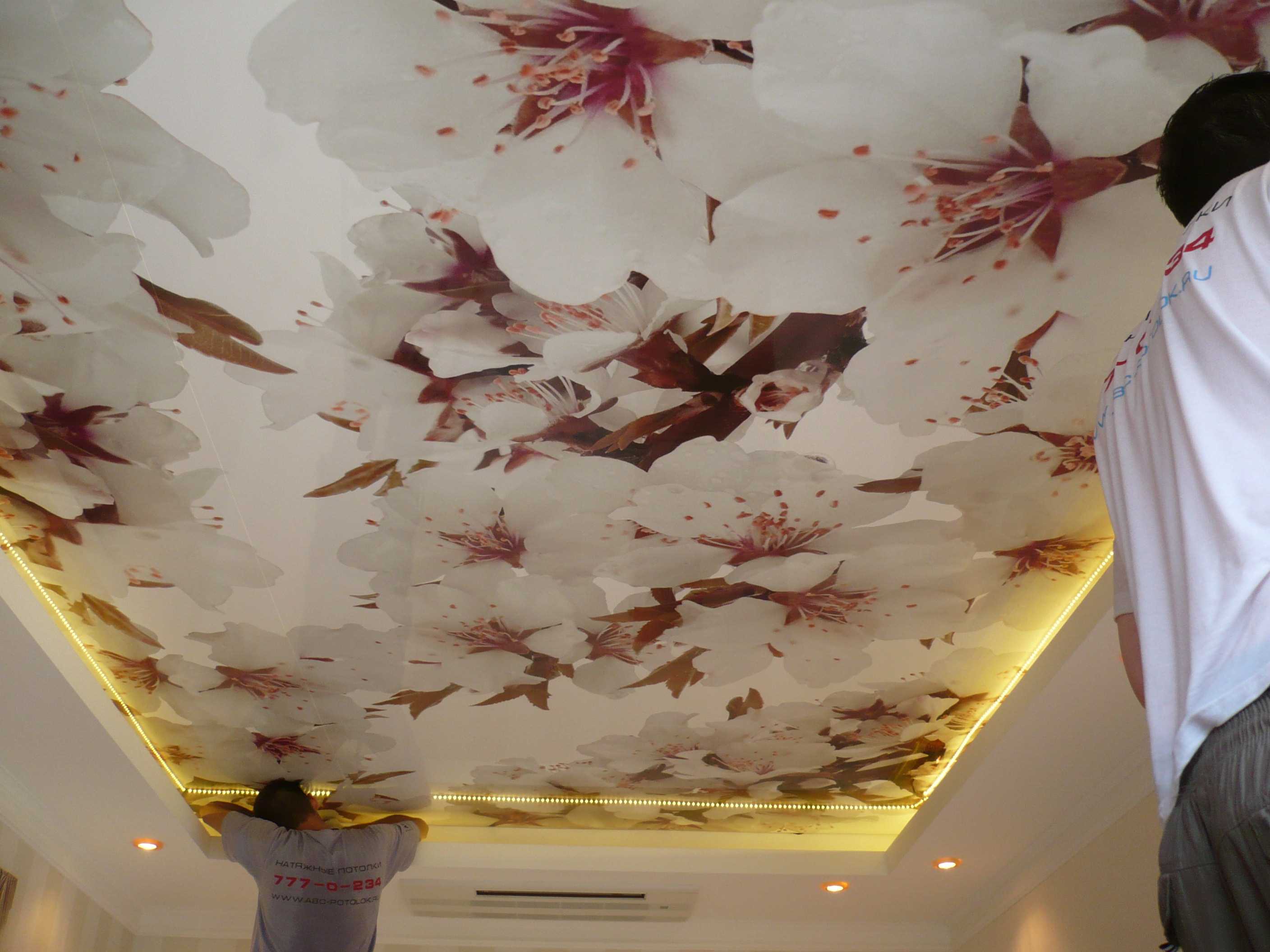 Art decor is the second type of paint application. It is used for stretch ceilings. Its essence is to apply a bright pattern to the surface of PVC. Such images are obtained with a three-dimensional effect. For this design, computer processing of the drawing is used, and then applied to the prepared area.