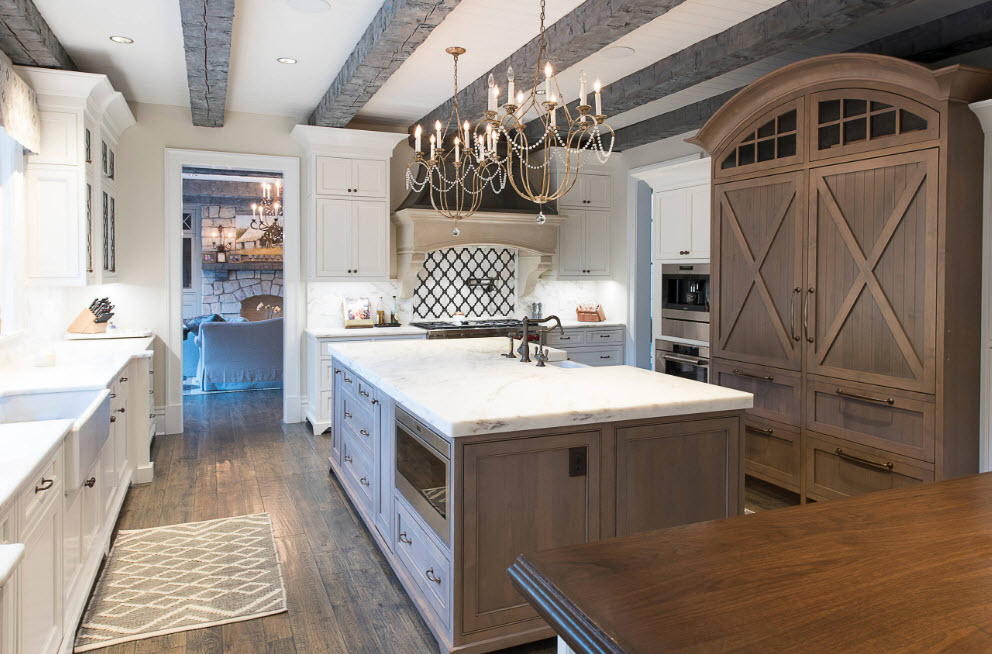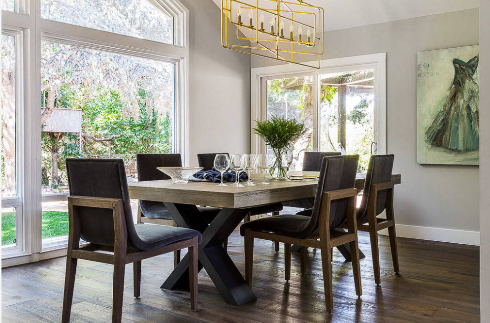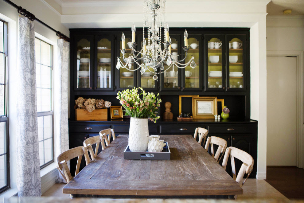 A traditional option is a crystal chandelier located in the center of the ceiling of the room. From transparent crystal sparkling in the sun (or in the glow of candles at the festive table), it will ideally fit into any interior style: from classic modest to modernist especially expensive.