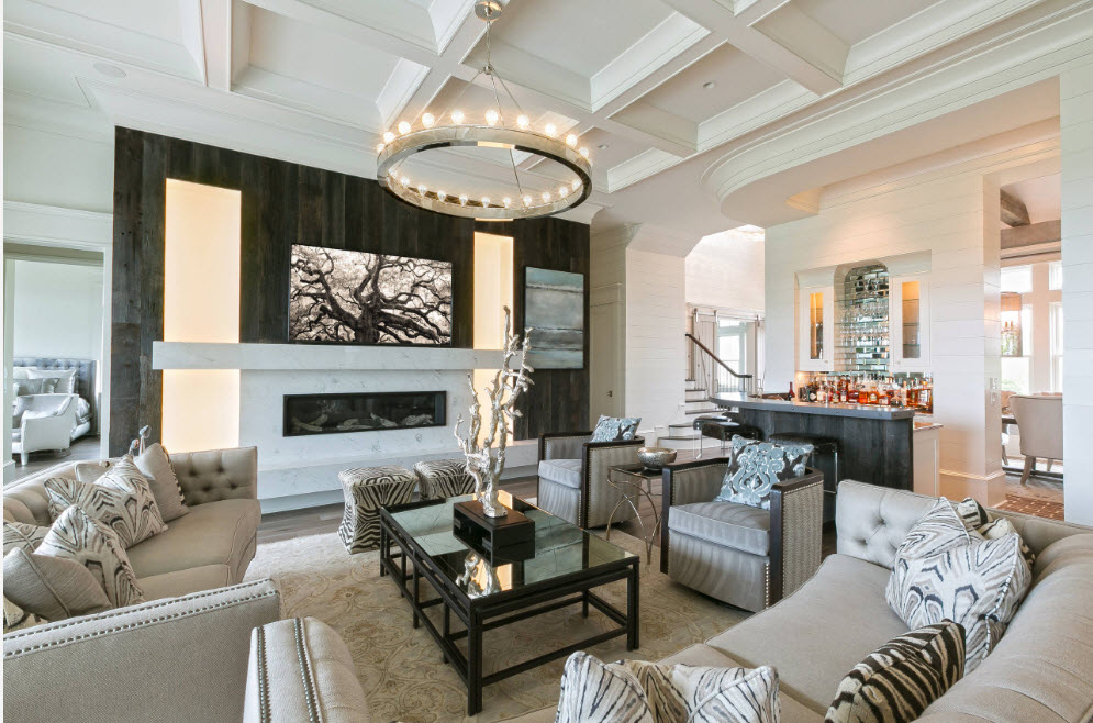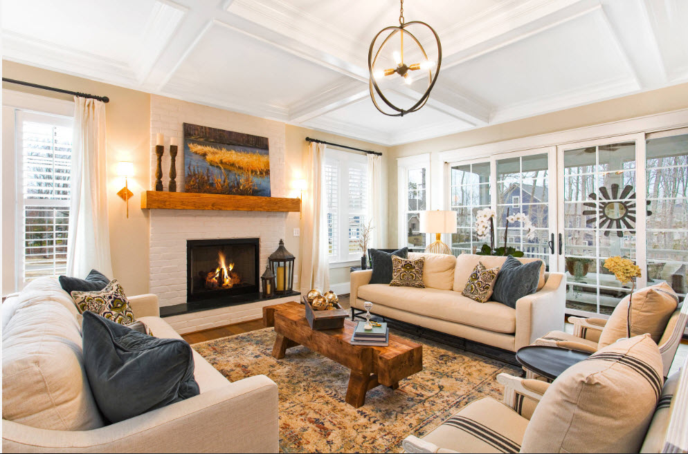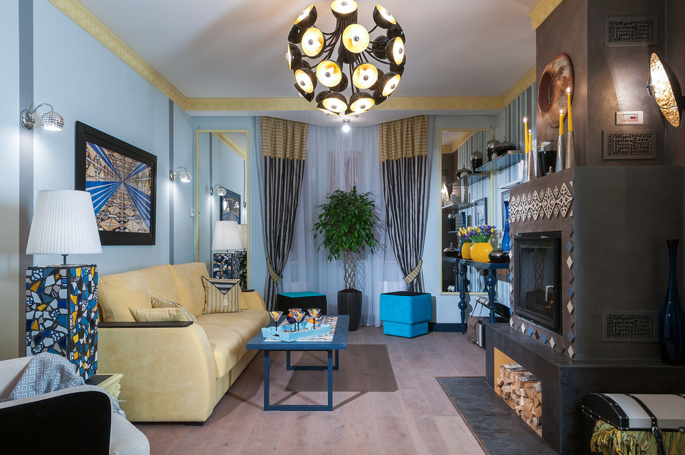 The ceiling lampshade in the living room may have additions in the form of gilded chains, candlesticks, decorative elements made of metal, bronze, glass or expensive natural stones. It is worth considering that the chandelier for the interior of the living room is not bought so often, and even if after major repairs you still decide to change the shape of the central electric lamp, you will not want to perform the next such replacement soon. That is why it is worth paying special attention to the choice of a chandelier and it is advisable to buy the most practical option.