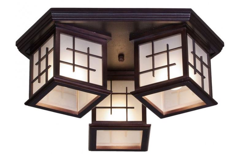 - A direct variety of eco-chandelier is considered a Japanese-style chandelier. In fact - the same natural composition of the decoration of the ceiling, but from the materials of the East: bamboo, rice paper and others. Another characteristic of the Japanese style is the clear geometry of the pattern and the absence of any pomposity, chic (everything is as restrained and concise as possible).