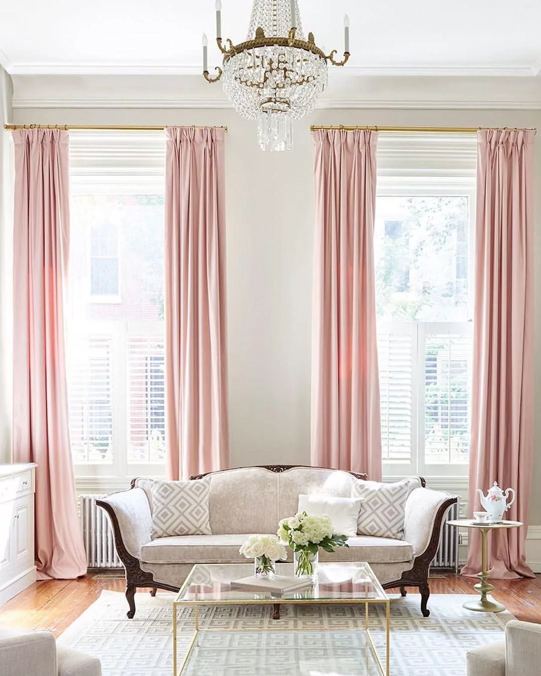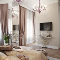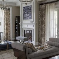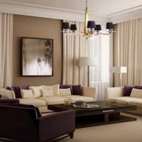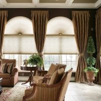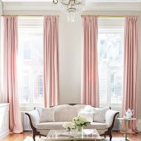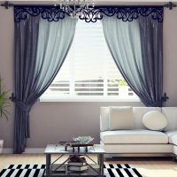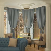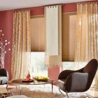 Draperies are a dense fabric. This option can be combined with light curtains or roller blinds. Typically, curtains become a major accent in the interior of the hall. Particularly suitable for classic interiors.